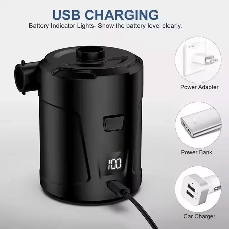 Say goodbye to manual pumps and bulky inflators! The [Product Name] is a rechargeable, compact electric air pump designed to make inflating and deflating your air mattresses, pool floats, camping gear, and toys faster and easier than ever.